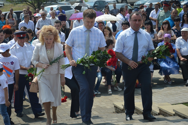 По окончании торжественной церемонии и церемонии освящения Хачкара, участники мероприятия возложили цветы к памятнику