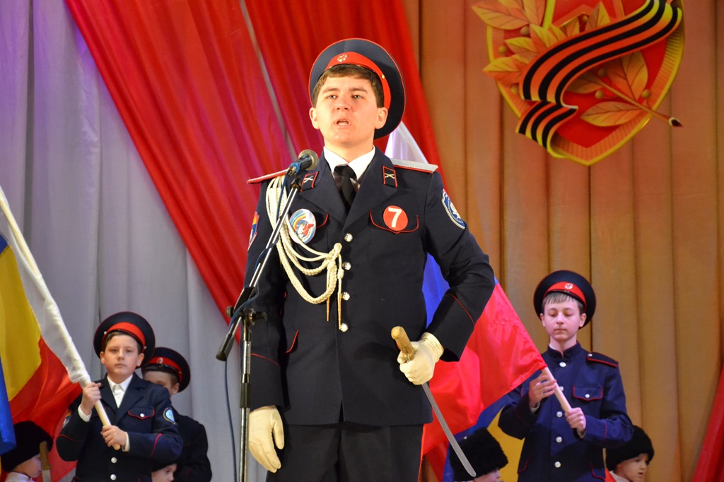21 февраля во Дворце культуры им.Чкалова состоялся 12-й районный конкурс «Юный атаман-2017», в котором принимали участие 8 атаманов казачьих образовательных учреждений. Как и любое дело у казаков, конкурс начался с благословения священника - настоятеля православного храма Державной иконы Божьей матери отца Александра, который выразил уверенность в том, что такие мероприятия, воспитывающие патриотизм, любовь к Родине, радуют и вселяют надежду, что будущее России окажется в надежных руках молодого поколения.