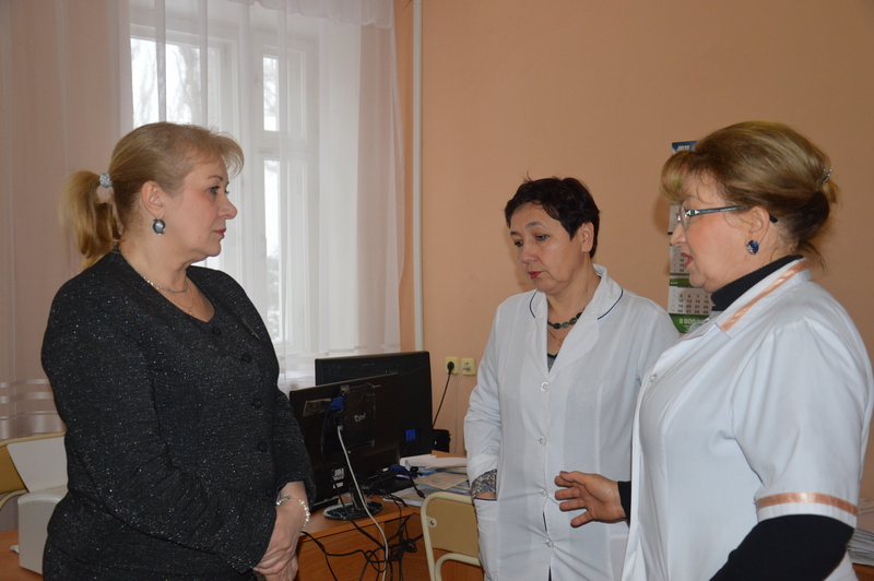 В сопровождении главного врача ЦРБ Галины Федорченко и заместителя главного врача по поликлинической работе Ирины Дунайцевой глава Администрации района Ольга Мельникова посетила поликлиники города Белая Калитва.