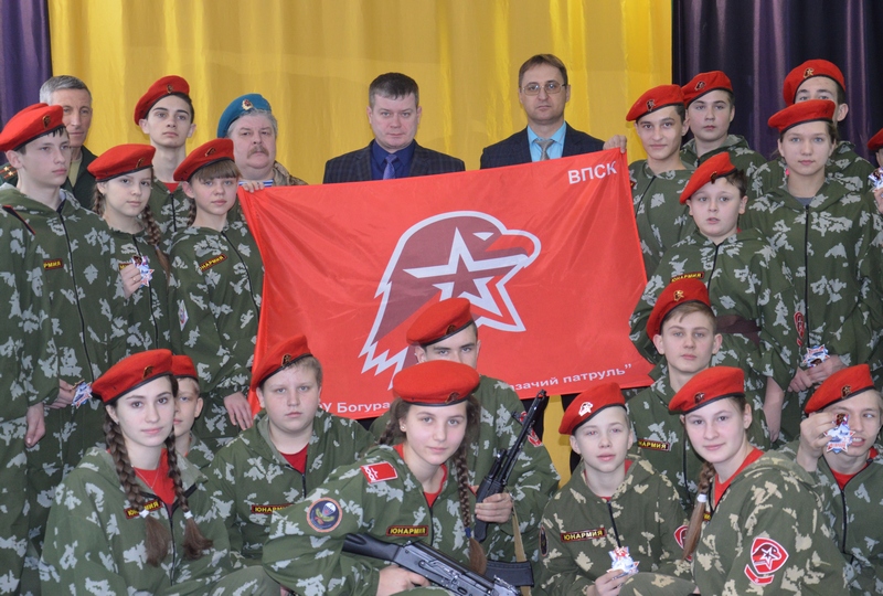 Начался Сбор с построения участников и сдачи рапорта командирами военно-патриотических клубов и объединений. Затем состоялась торжественная церемония вступления обучающихся Богураевской средней школы в ряды Белокалитвинского отделения Всероссийского военно-патриотического движения «Юнармия». В торжественной обстановке юнармейскому отряду «Казачий патруль» были вручены значки юнармейца, знамя «Юнармии».