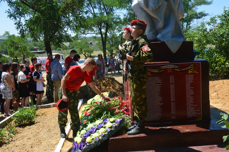 22 июня в хуторе Поцелуев у братской могилы состоялась церемония торжественного перезахоронения останков трех воинов, найденных в результате поисковых экспедиций. На митинге присутствовали жители района, учащиеся, молодежь и ветеран Великой Отечественной войны Иванов Дмитрий Карпович. В торжественном карауле у братской могилы стояли вахту памяти ребята из Всероссийского военно-патриотического движение юнармия. Обращаясь к присутствующим глава Администрации района Ольга Мельникова отметила важность и значимость сегодняшнего события в плане сохранения исторической памяти, патриотического воспитания молодежи, восстановления событий Великой Отечественной войны. Ольга Мельникова поблагодарила поисковый отряд, благодаря которому будут захоронены найденные останки героев войны. Военный комиссар г.Белая Калитва, Белокалитвинского и Тацинского районов Юрий Цыганенко и глава администрации Белокалитвинского городского поселения Сергей Сягайло призвали бережно хранить память о воинах и не забывать уроки той войны. Руководитель по патриотическому воспитанию поискового отряда «Победоносец» имени Дважды Героя Советского Союза И.И. Фесина Николай Курилкин рассказал присутствующим о проводимой работе, направленной на увековечивание памяти солдат. В 2017 году поисковым отрядом «Победоносец» в окрестностях хутора Дядин были обнаружены остатки трех бойцов Советской армии, захороненные после боя в воронке от авиабомбы. В результате поисковой работы были обнаружены предметы и личные вещи солдат, а затем установлены сведения об одном из погибших бойцов, это- Белозеров Николай Тимофеевич, 1921 года рождения уроженец Пермского края Кизеловского района село Александровка, проходивший службу в 5танковой армии 58 механизированной бригады в период 1941-1943 года. Перед началом погребения отец Александр-настоятель Свято-Троицкого храма отслужил заупокойную литию. Под звуки траурной мелодии началось захоронение, салютная группа произвела трехкратный залп. Затем все присутствующие отдали последнюю дань памяти погибшим и возложили цветы к мемориалу. «Война не закончена, пока не похоронен последний солдат» - эти слова принадлежат великому русскому полководцу Александру Суворову. В земле лежат сотни, тысячи солдат, и благодаря усилиям поисковых отрядов, мы имеем возможность предать земле найденные останки героев Великой Отечественной войны.