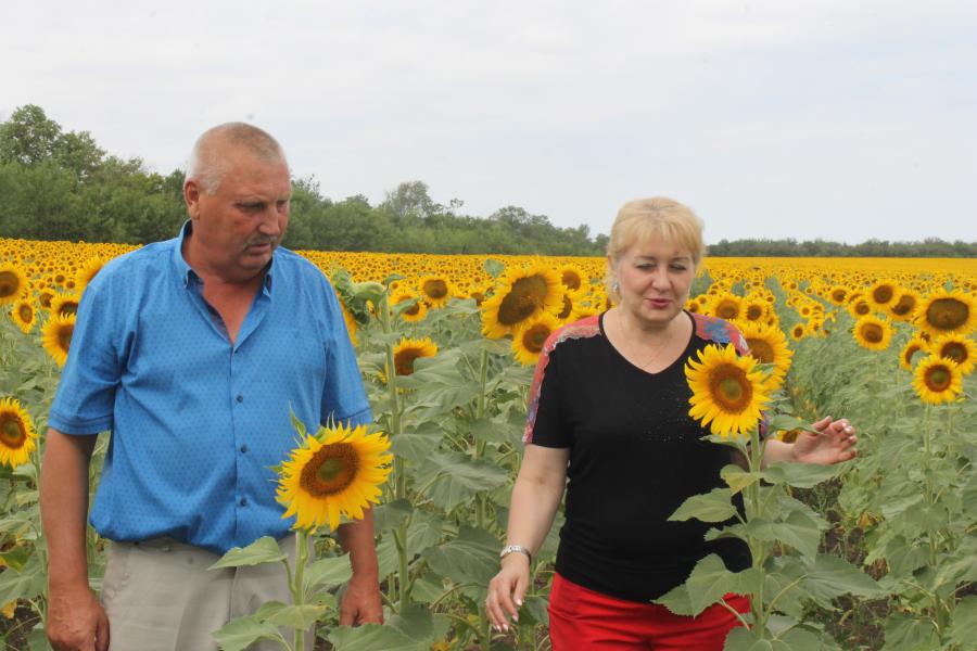 В июле перед земледельцами встает очередной серьезный экзамен - организованно убрать выращенный урожай. С целью ознакомления с состоянием посевов и ходом уборки зерновых культур глава Администрации района Ольга Мельникова совершила традиционный объезд полей, который начался со встречи с руководителями сельхозпредприятий АО «Дружба», ТНВ «Михеев и К», ИП «Капуза», а так же с главами К(ф)Х Нижнепоповского поселения. Как сообщил руководитель сельхозпредприятия Иван Капуза, на сегодняшний день в его хозяйстве земли 2 514 га, на которой применяются передовые технологии посевов высококачественными семенами, предпочтения отдаются проверенным сортам, таким как «Гром», «Алексей». Помимо озимой пшеницы, которая занимает 800 га посевной площади, выращиваются яровой ячмень 240 га, кукуруза 100 га, подсолнечник 291 га, эспарцет 37 га, горох 100 га, горчица 104 га, овес 17 га, суданка 20 га. Поля выглядят ухоженными, благодаря осуществлённому в полном объёме комплексу мероприятий. Хорошую работу аграриев Ольга Мельникова отметила на полях сельскохозяйственных культур ООО «АПК «Победа», где уже убрано 300 гектаров озимой пшеницы «Если все агротехнические мероприятия провести в сроки и качественно, то и сорняков не будет, и урожай будет», - подчеркнула Глава Администрации района. В соответствии с планом севооборота на 2018 год в хозяйстве посеяно озимой пшеницы на площади 1500 га, белой горчицы – 25га и подсолнечника – 502 га. Уже радует урожаем теплица, которую в этом году построили на территории ООО «АПК «Победа».