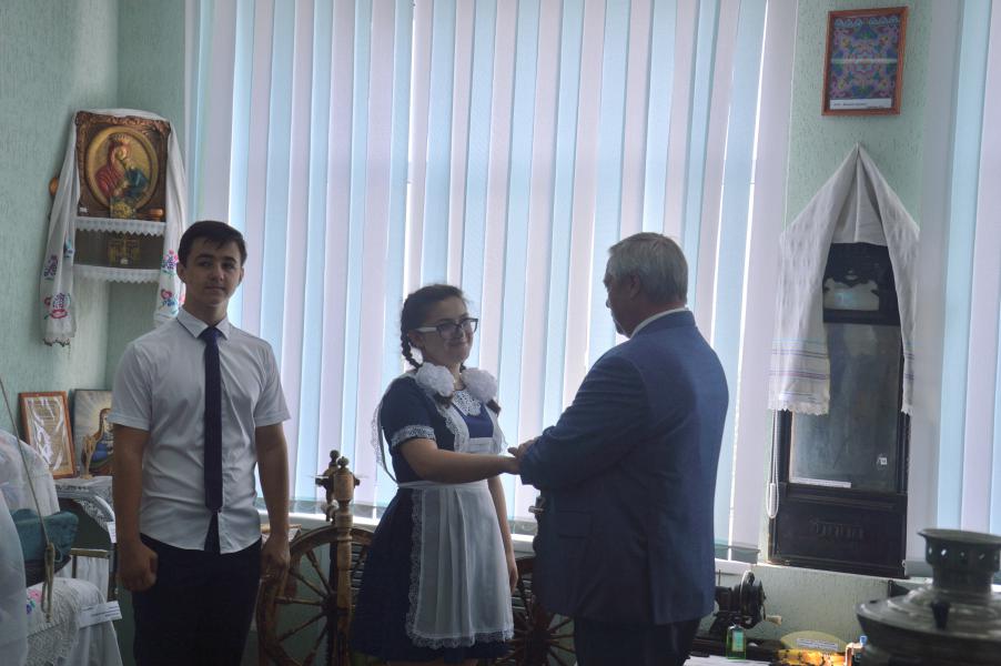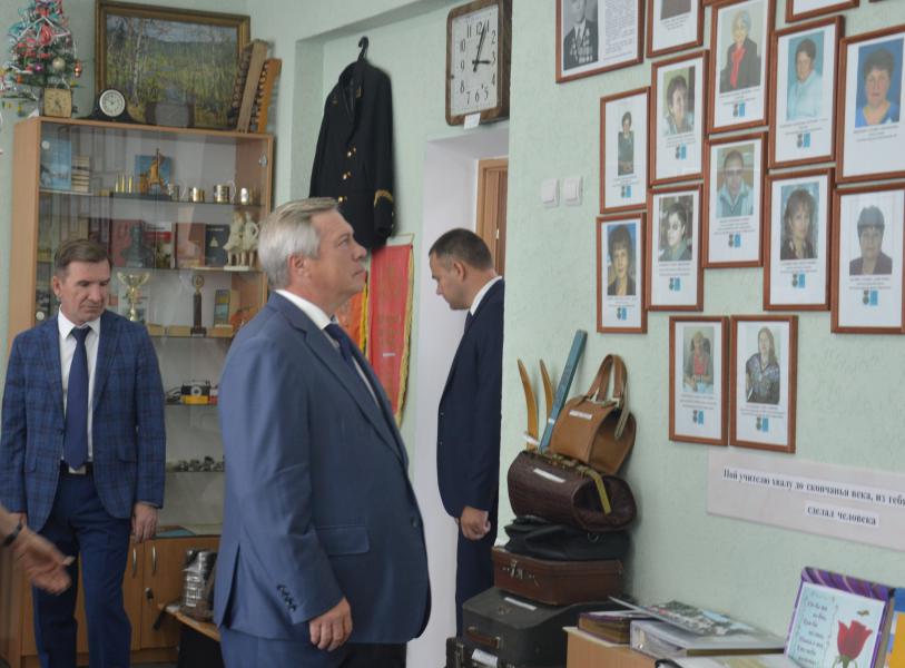 После торжественной линейки Василий Голубев посетил уроки знаний в первом и одиннадцатом классах и побывал в школьном литературно-краеведческом музее «Боян», созданный учителем истории, краеведом, писателем Петром Иосифовичем Ковешниковым.