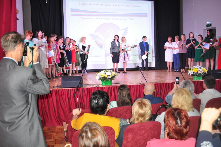 В рамках торжественного собрания под теплые аплодисменты присутствующих прошла церемония закрытия муниципального конкурса «Учитель года -2018». Решением жюри конкурса победителем конкурса в номинации «Учитель года» определена Т.С.Дерезина, учитель биологии МБОУ СОШ № 4; в номинации «Воспитатель года» победила Е.Ю.Колесникова, воспитатель МБДОУ ДС № 56 «Улыбка», в номинации «Педагогический дебют» победу одержала Д.С.Косинова, учитель начальных классов МБОУ СОШ № 4; открытием года стала учитель физической культуры Краснодонецкой СОШ О.О.Ковердынская, завоевавшая победу в номинации «Учитель здоровья».