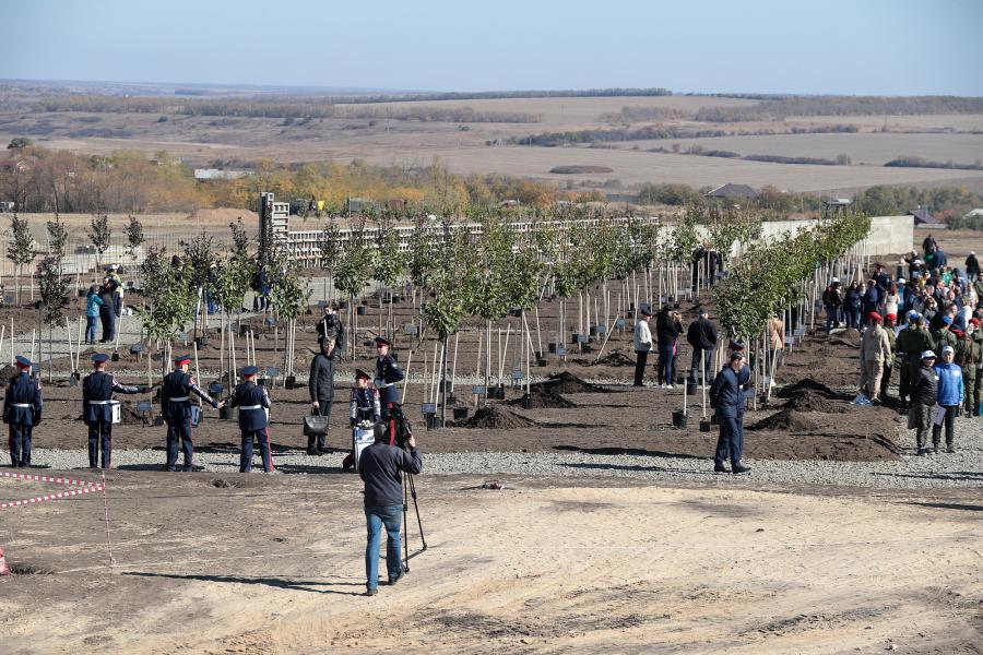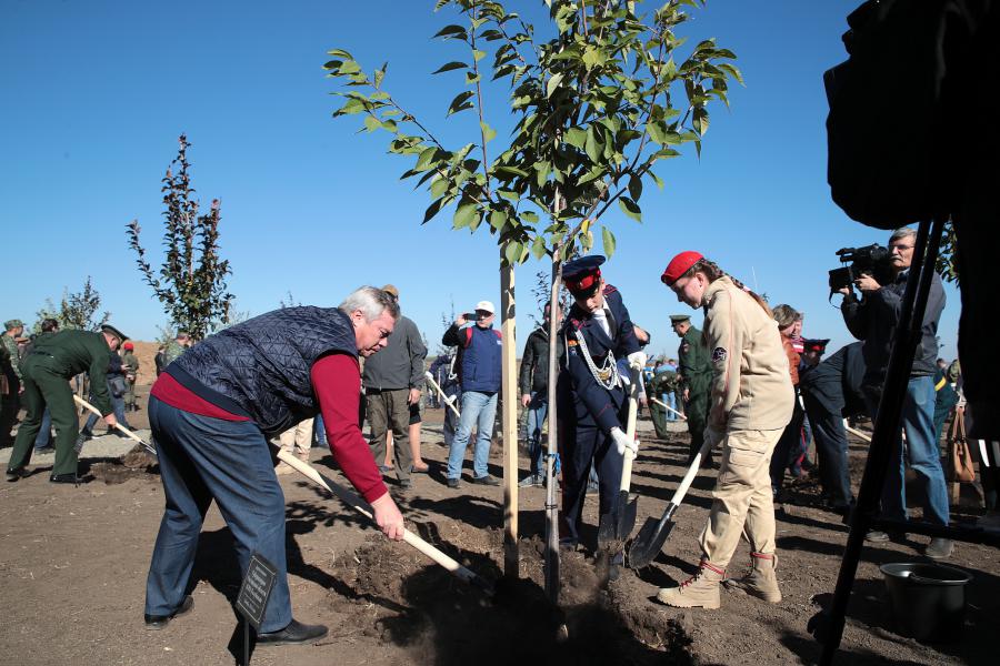 На территории строящегося народного военно-исторического музейного комплекса «Самбекские высоты» состоялась торжественная церемония закладки сада Победы. Губернатор Василий Голубев посадил в новом сквере дерево вишни. В честь каждого российского субъекта был высажен саженец. Высаженный сад Победы насчитывает почти 200 декоративных деревьев: вишни мелкопильчатой и яблони Недзвецкого.