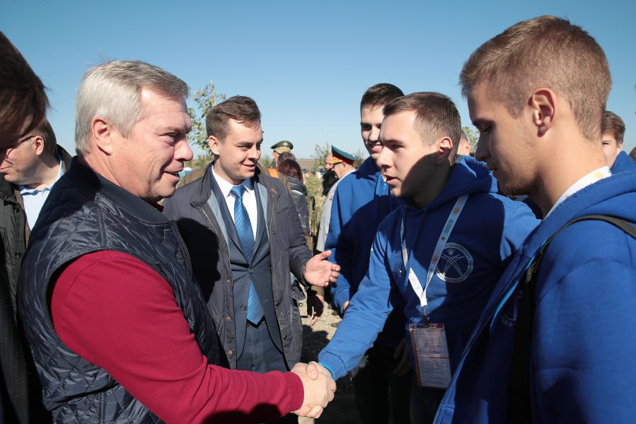 Губернатор поблагодарил представителей российского студенчества за участие в памятном событии и рассказал главе российских студотрядовцев о том, что на площадке музейного комплекса продолжится озеленение. На аллее Памяти будут высажены 12 видов сирени маршалов Победы. Через дорогу к комплексу построят пешеходный переход. Для жителей близлежащего села Самбек будет проложен новый водопровод