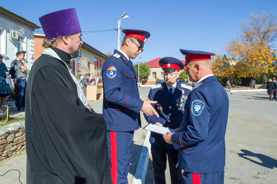 С приветственным словом к участникам смотра-конкурса обратился Атаман Усть-Белокалитвинского казачьего юрта подхорунжий Николай Тимошенко.