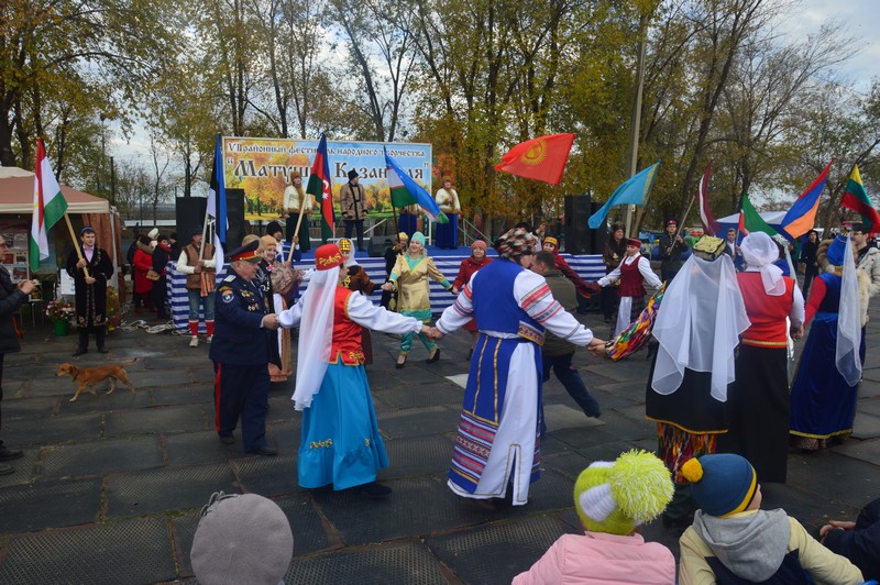 В рамках фестиваля «Матушка Казанская» поселения района представили свои территории красочными визитными карточками с национальным колоритом, в которых было все: и богато накрытый стол, и работы местных мастеров и мастериц, танцы и обряды. Кто только не приветствовал гостей: узбеки и казахи, киргизы и таджики, азербайджанцы и армяне, молдаване, латвийцы, эстонцы, латыши и татары.