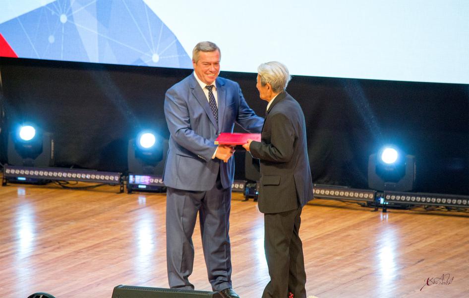 Губернатор оценил заслуги и вручил почётную грамоту исполнительному директору региональной общественной организации «Объединение корейцев Ростовской области» Тян Сон Гиру, который отметил своё 90-летие.