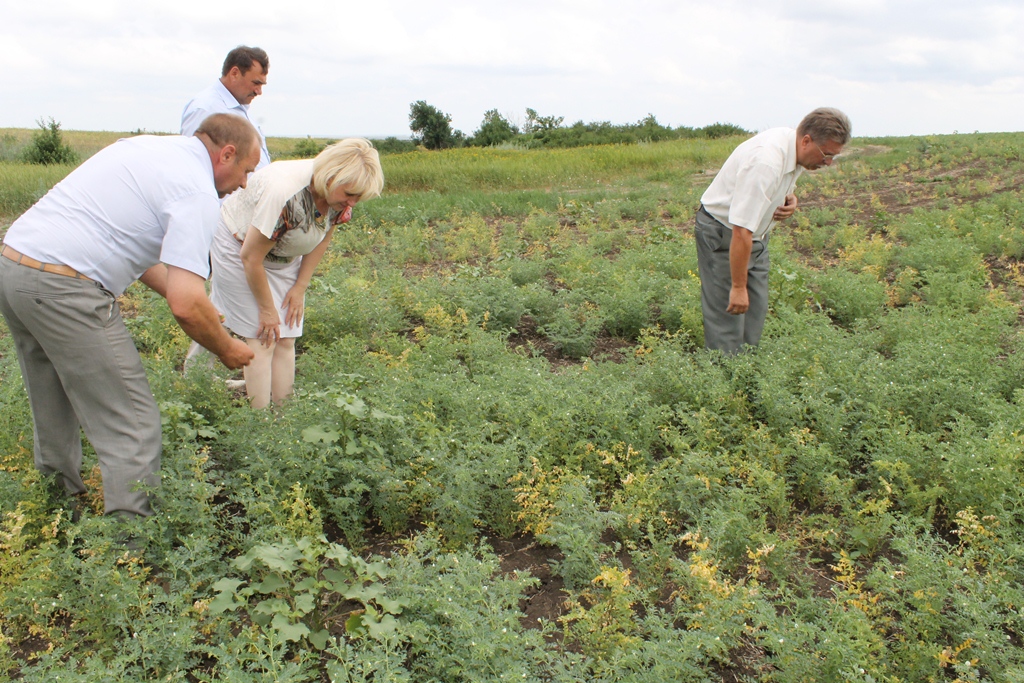 Ольга Мельникова ознакомилась с NO¬UTIL – новой технологией выращивания озимых, кукурузы, подсолнечника, которую применяет Анатолий Гладышев. Применяемая технология выращивания сельхоз культур подразумевает сев на необработанных почвах, т.е. ни пахать, ни культивировать почвы перед посевом не надо. Глава района оценила преимущество данной технологии – состояние озимых, кукурузы в хозяйстве Анатолия Гладышева очень хорошее. ТНВ «Гладышев и К» уже приступило к уборке озимого ячменя. Неблагоприятные погодные условия – отсутствие дождей, высокие температуры, сказываются на состоянии посевов яровых культур, льна, нута, гороха.