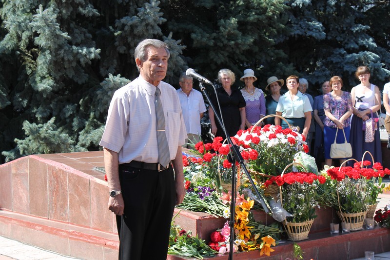 В митинге и возложении цветов приняли участие представители Администрации Белокалитвинского района, Собрания депутатов, Совета ветеранов, руководители и коллективы предприятий и организаций района. 72 года назад фашистская армия напала на нашу страну. Только благодаря советскому солдату наша страна выстояла. За боевые заслуги сотни сынов и дочерей Белой Калитвы награждены медалями и орденами. На территории Белокалитвинского района проживают 2 освободителя города: Аниканов Серафим Григорьевич и Евлахов Виктор Павлович. Низкий поклон освободителям! Миллионы жизней унесла Великая Отечественная война. В годы войны вместе со всем народом героически сражались на фронтах 15 тысяч белокалитвинцев, около 2–х тысяч из них не вернулись, отдав самое дорогое – свою жизнь за свободу Родины. У подножия мемориала, в память о погибших в Великой Отечественной войне, кадеты Белокалитвинского Матвея Платова казачьего кадетского корпуса коленопреклоненно поставили зажженные свечи
