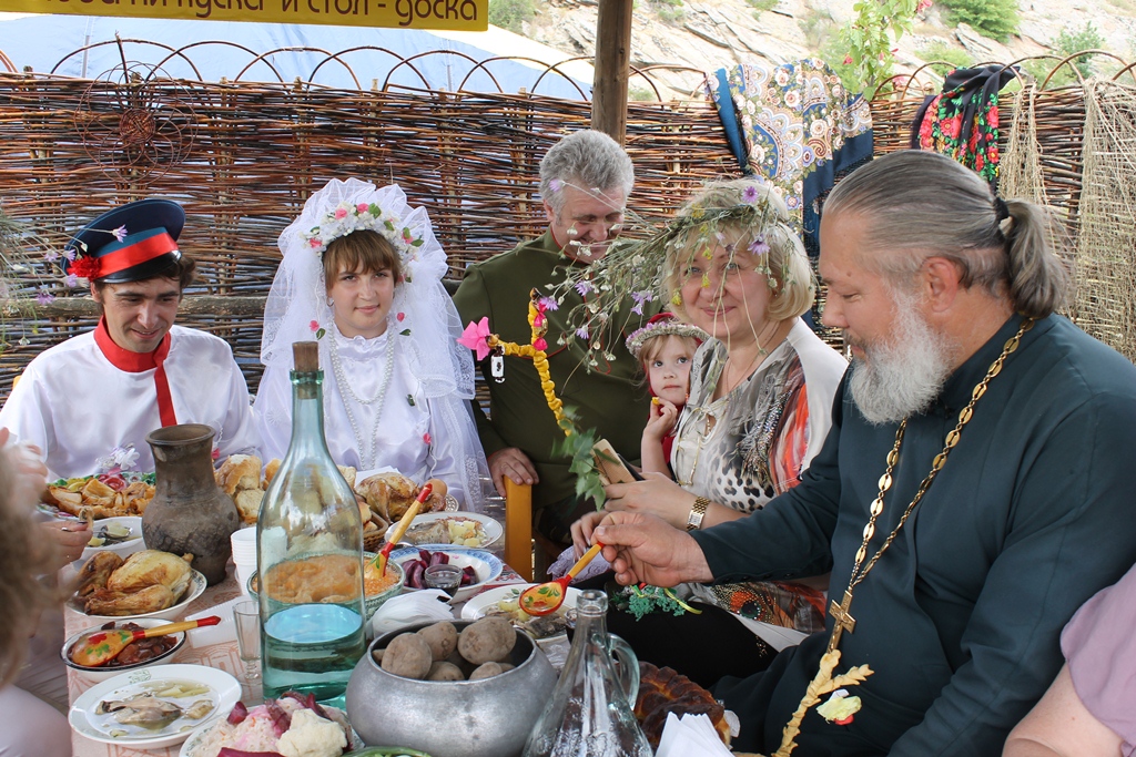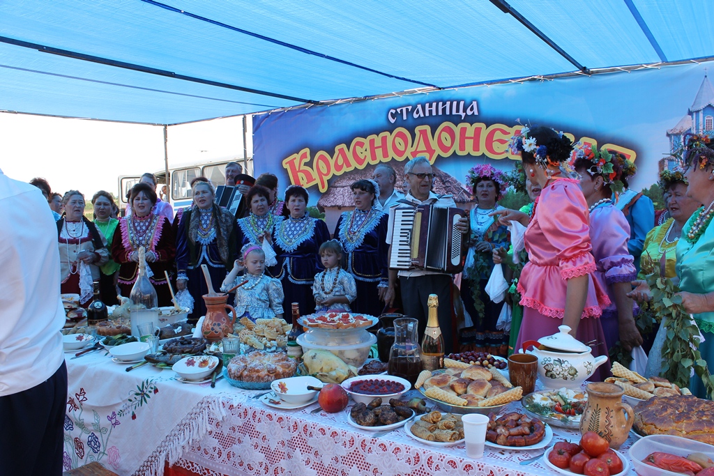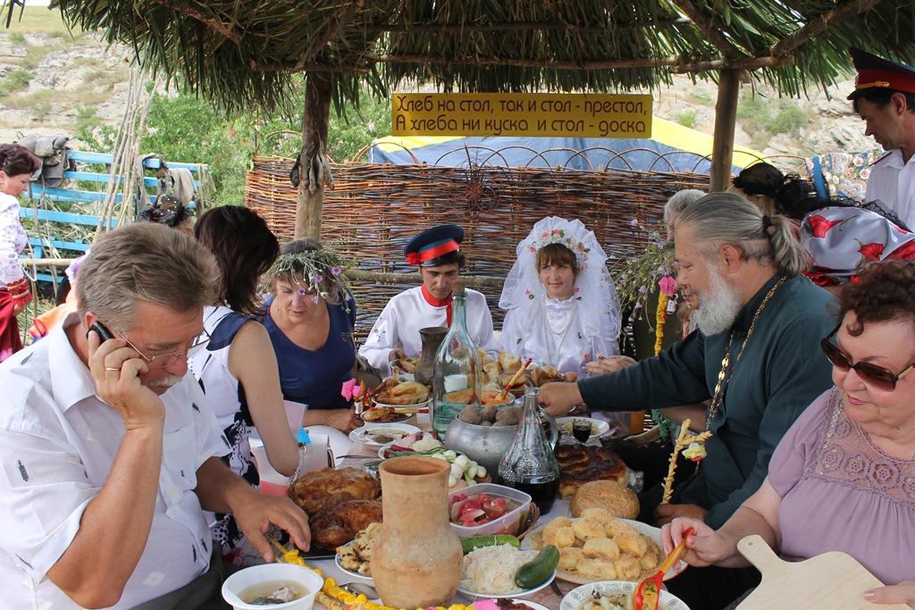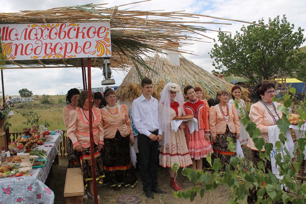 «Вот уже 10-ый раз в Белокалитвинском районе в х. Дядин у Свято-Троицкого Храма проводятся Троицкие гуляния. В этом году они посвящены 310-летию основания Белой Калитвы», – открыла Глава района Ольга Мельникова X фестиваль традиционного быта и народного творчества «Окна истории». 23 июня 2012 года у Свято-Троицкого Храма в х. Дядин состоялся X фестиваль традиционного быта и народного творчества «Окна истории» в рамках празднования 310-летия основания Белой Калитвы. Открыла фестиваль Глава района Ольга Мельникова: «Троица — очень красивый праздник. По традиции в этот день дома и храмы украшают ветками, травой, цветами. И это неслучайно, ведь зелень, цветы символизируют жизнь. В нашем районе традиция празднования Троицы сохраняется и приукрашается год от года. Благодаря творчеству подходу и фантазии участников фестиваля, мы имеем уникальную возможность окунуться в казачий быт, вспомнить казачьи традиции, приобщить молодежь к казачьей культуре, и прикоснуться к чему-то доброму, вечному», - заметила Глава района в своем поздравлении. Ольга Мельникова пожелала всем собравшимся ощутить духовный подъем, светлую радость и получить приятные впечатления от праздника. В концертной программе «Троицкие гуляния» выступили 12 коллективов клубных систем района с композициями: «Гуляют Троицу на хуторах», «Во поле березка стояла», «Троицкий каравай», «Выкуп невесты» и другие. В тоже самое время вниманию гостей праздника были представлены казачьи подворья поселений: «Белокалитвинское», «Богураевское», «Шахтерское», «Артемовское», «Грушево-Дубовское», «Ильинское», «Коксовское», «Краснодонецкое», «Литвиновское», «Нижнепоповское», «Синегорское», «Шолоховское». Зрители могли окунуться в атмосферу казачьего быта: от многообразия костюмов до изобилия блюд казачьей кухни, каждого на подворьях ожидал радушный прием с казачьими песнями и хлебом-солью. Следует отметить, все участники вложили свою душу в представленные подворья, в каждом была своя изюминка, что-то особенно интересное, в подворьях была продумана каждая деталь от патефона в Нижнепоповском и фотографий казаков на стенах куреней в Литвиновском, Горняцком, Грушево-Дубовском, до собачки у Шолоховского двора и лошадей на базу – в Богураевском. Конкурсная комиссия под руководством Главы района Ольги Мельниковой осмотрела все подворья, в каждом дорогих гостей встречали хлебом-солью, угощеньями, подарками, сделанными своими руками. Лучшим было признано Грушево-Дубовское, победители получившее приз от Главы района 50 тысяч рублей. Всем участникам фестиваля были вручены памятные подарки. Важным моментом фестиваля является сбор пожертвований на восстановление Свято-Троицкого храма, каждый мог внести свою маленькую лепту в духовное возрождение Белокалитвинского района. Праздник удался на славу, все гости мероприятия получили массу ярких впечатлений и положительных эмоций, а главное - возможность вспомнить свои корни, окунуться в атмосферу казачьего быта. Основной целью фестиваля, конечно же, является и приобщение молодежи к добрым казачьим традициям, напоминание красивых обрядов, оригинальных обычаев.