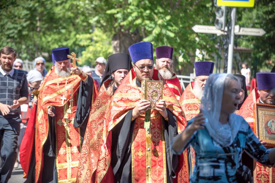 Завершился крестный ход богослужением в Храме Державной Иконы Божией Матери, которое провели участвовавшие в нем священнослужители