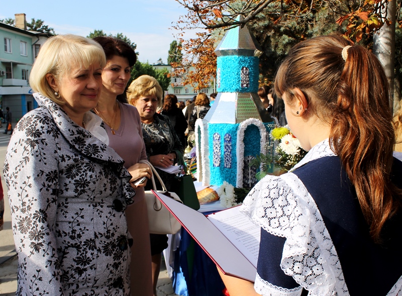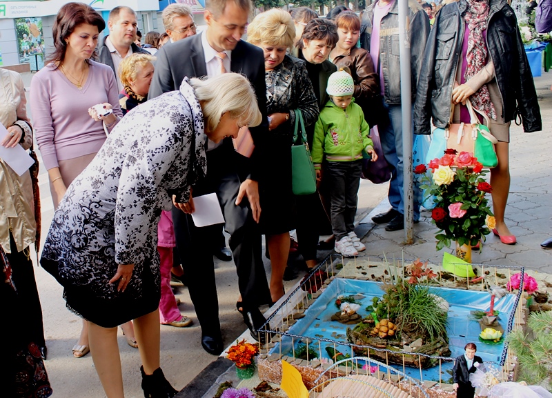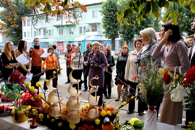 Немного позже, по традиции, Театральную площадь украсила выставка цветочных композиций, в которой приняли непосредственное участие: школы и учреждения профессионального образования нашего города. Компетентное жюри под председательством Главы района Ольги Мельниковой попыталось выявить победителя, определить которого оказалось непросто, поэтому всем участникам конкурса были вручены Грамоты и памятные подарки. Удачно и необычно оформили свои композиции учащиеся и педагоги МБОУ СОШ № 2, №6 и № 17, ГБО НПО ПУ № 68, политехнический техникум, а также дети и воспитатели ДС/НШ №1 и многие другие.