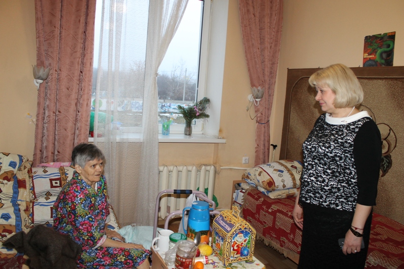 Подопечные отделения встретили гостей радушно и приветливо, заметив, что руководители такого уровня посещают их впервые. Ольга Мельникова поздравила с наступающими Новогодними и Рождественскими праздниками, пожелала здоровья, хорошего настроения. «Забота о нуждающихся и одиноких людях является неотъемлемой частью жизни нашего общества»,- отметила Глава района. Общаясь с пожилыми людьми, Ольга Мельникова поинтересовался у них отношением персонала, качеством питания и обеспечением лекарствами. Каждому пожилому человеку были вручены новогодние подарки.