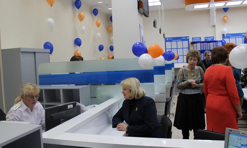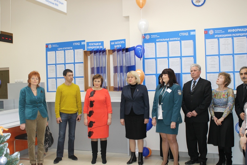 Глава района Ольга Мельникова открыла новый операционный зал, который соответствует фирменному стилю Федеральной налоговой службы