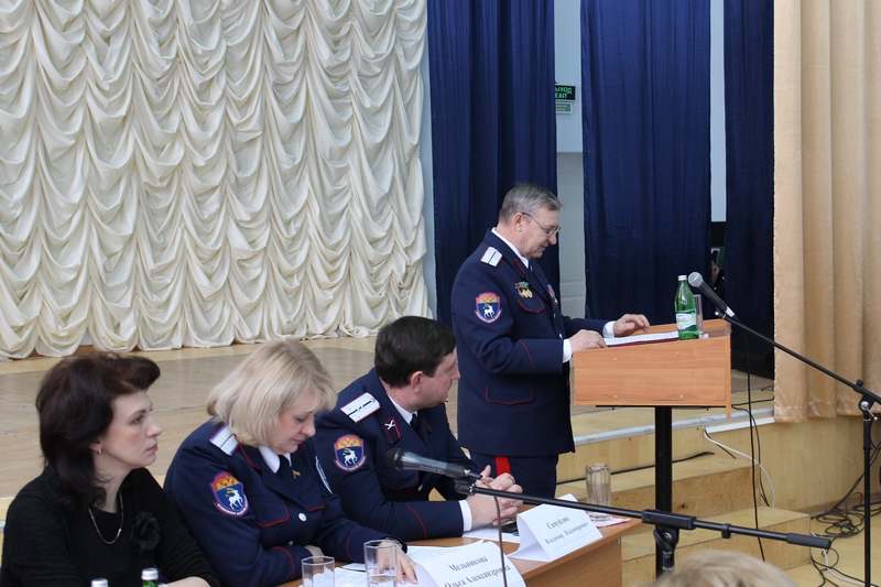 Директор Коксовской школы №12 Леонид Федотов в своем выступлении отметил, что с 2001 года школе присвоен статус «Казачья». Учащиеся принимают активное участие в районных мероприятиях «Юная казачка», «Юный атаман», «Слет казачьих содружеств», «Вахта памяти». Преподаватели школы ведут работу, направленную на гражданско-патриотическое воспитание молодого поколения через дополнительное образование, систему классных часов и внеурочных мероприятий. В 2008 году школа стала победителем национального проекта «Образование» по программе развития «Адаптированная школа, реализующая обучение на этнокультурной (казачьей) основе».Так же своим опытом работы поделились директора Ленинской школы Клавдия Сологуб, Богураевской школы Ирина Кащеева, городской школы №17 Ольга Шкондина, заведующая детским садом «Аленушка» Нина Низовкина, заместитель директора профессионального училища №90 Иван Серяков. Заместитель директора по учебно-воспитательной работе кадетского корпуса Людмила Махина предложила проводить совместные мероприятия с учащимися казачьих школ. Татьяна Кравченко отметила, что преподаватели Дома детского творчества находятся в постоянном поиске инновационных форм работы. В настоящее время реализуется проект «Районная школа юного атамана «Сполох», нацеленный на формирование общекультурных, нравственных и лидерских качеств юного атамана. Настоятель прихода храма Казанской иконы Божией Матери Отец Дмитрий п. Коксовый посоветовал привлекать на школьные мероприятия представителей духовенства, возрождение духа и души донского казачества невозможно без передачи подрастающему поколению идеи уважения к традициям, милосердия.