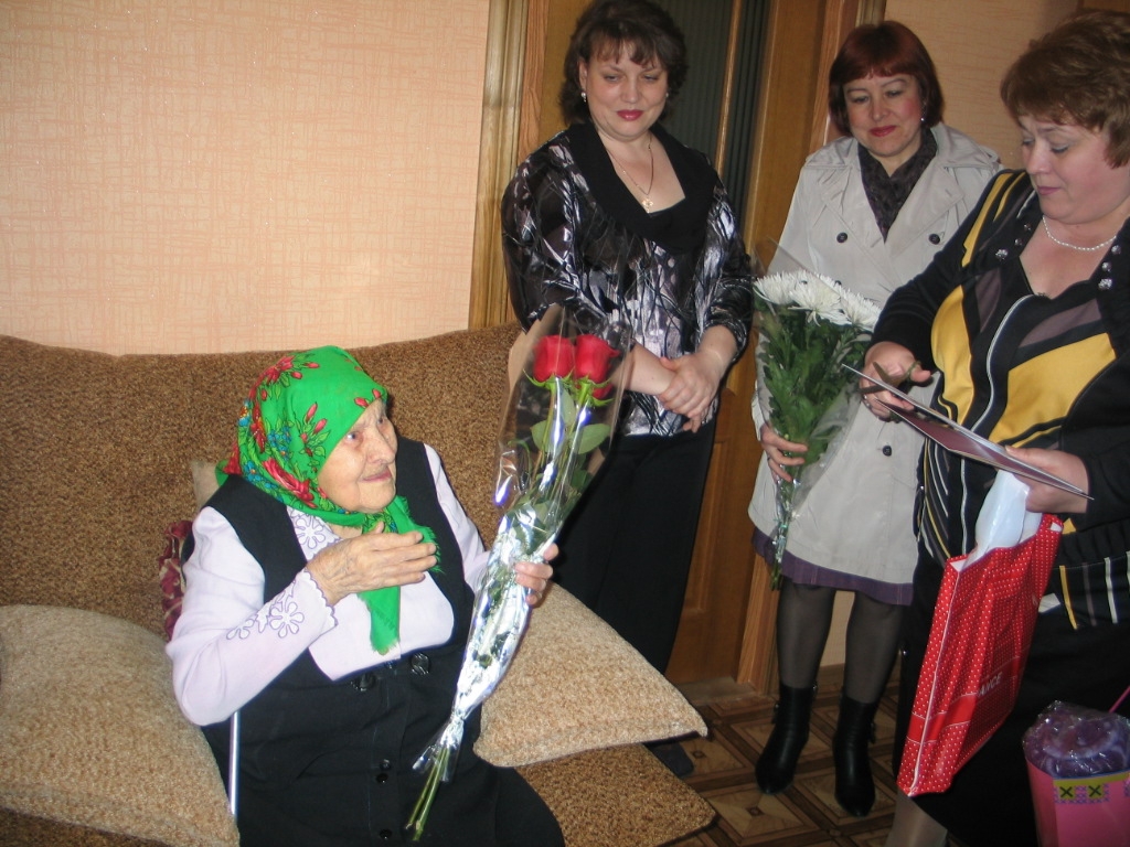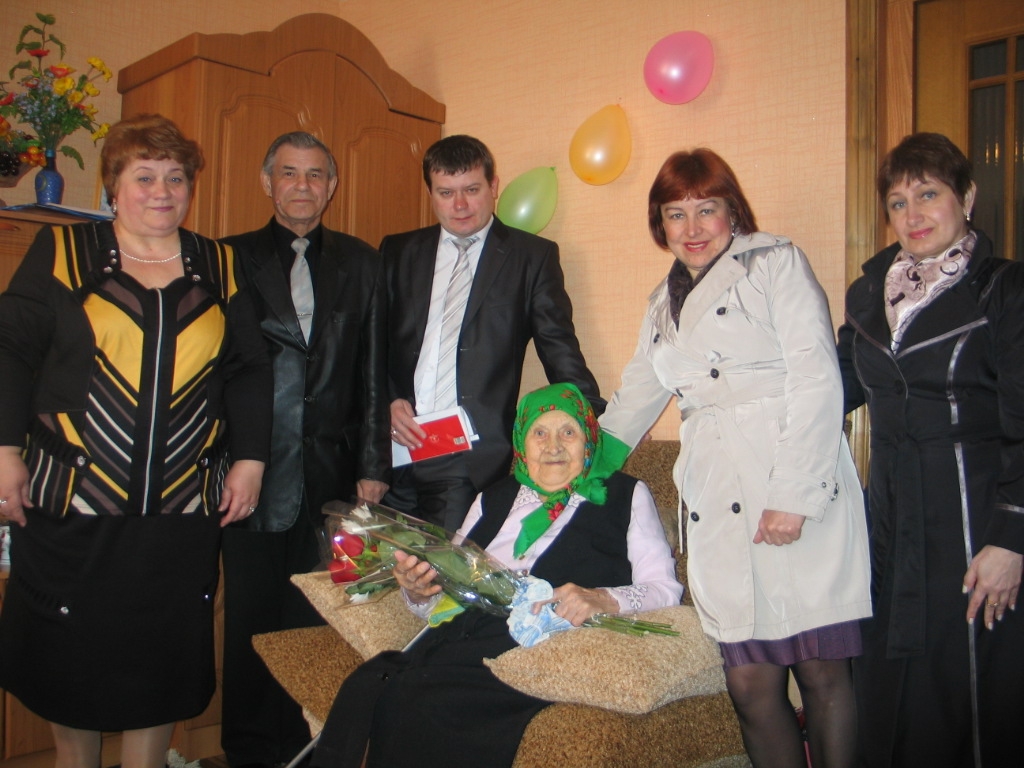В канун праздника Великой Победы, поздравить с 90-летием ветерана Великой Отечественной войны, труженицу тыла Дронову Полину Тимофеевну приехали заместитель главы Администрации по социальным вопросам Елена Керенцева, глава Синегорского поселения Николай Волков, председатель совета ветеранов, начальник отдела ЗАГС. В торжественной обстановке юбиляру были зачитаны поздравительные письма, вручены цветы и памятные подарки.