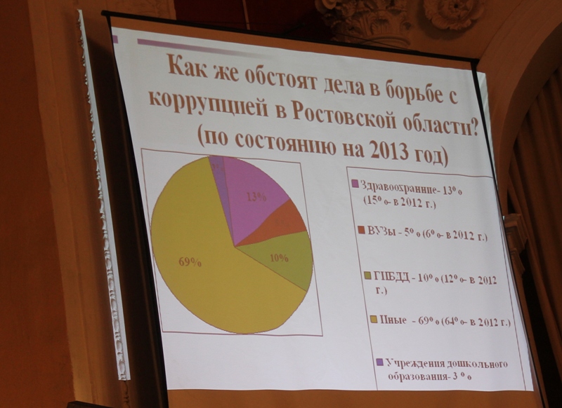 30 апреля в ДК им. Чкалова состоялась областная научно-практическая конференция, посвященная вопросам противодействия коррупции, в которой приняли участие муниципальные служащие, работники бюджетных учреждений, учащиеся образовательных учреждений города и района. Открыл конференцию начальник службы – руководитель аппарата комиссии по противодействию коррупции в Ростовской области Сергей Кулик. Далее с докладом выступил, начальник отдела по надзору за исполнением законодательства о противодействии коррупции прокуратуры Ростовской области Андрей Прокуратов, который акцентировал внимание присутствующих на борьбе с коррупцией в муниципальных учреждениях. В своем выступлении первый заместитель главы Администрации Белокалитвинского района Дмитрий Устименко отметил, что приоритетом в противодействии коррупции является устранение причин, которые ее порождают. «Противодействие коррупции - это общая задача властных структур, общественных объединений и средств массовой информации», - подчеркнул Дмитрий Устименко. «О мерах по противодействию коррупции в Белокалитвинском районе» сообщил начальник отдела МВД России по Белокалитвинскому району Александр Казаков. Заместитель прокурора Белокалитвинского района, младший советник юстиции Николай Скачков проинформировал слушателей о прокурорском надзоре за исполнением законодательства по профилактике коррупционных правонарушений и преступлений в Белокалитвинском районе. Завершением конференции стала презентация о положении коррупции в России и мире, доктора юридических наук, профессора кафедры процессуального права Южно-Российского института-филиала Российской академии народного хозяйства и Государственной службы при Президенте Российской Федерации Сергея Воронцова. В рамках конференции артистами Ростовского академического театра им.М.Горького был представлен спектакль по пьесе А.Н. Островского «Доходное место».