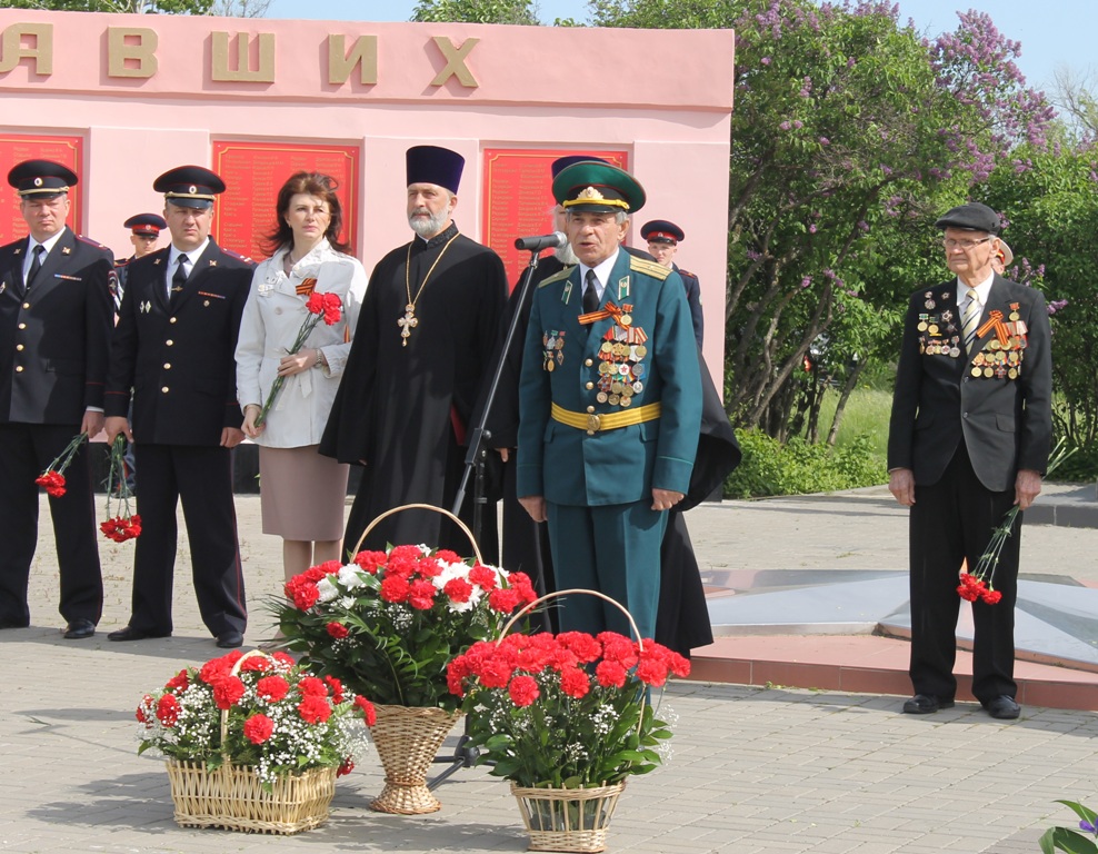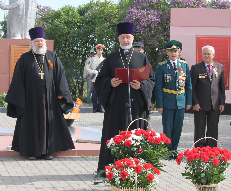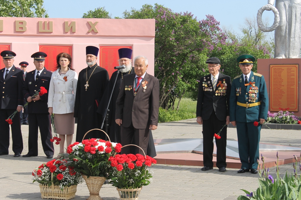 С праздником собравшихся поздравили сын Героя Советского Союза Аннаклыча Атаева Владимир Атаев, председатель Собрания депутатов Белокалитвинского района Валентина Сидненкова, председатель Совета ветеранов войны, труда, Вооруженных Сил и правоохранительных органов Владимир Амельченко, начальник отдела военного комиссариата по Белокалитвинскому и Тацинскому районам Юрий Цыганенко и Благочинный Белокалитвинского Благочиния, протоиерей Василий Маштанов.