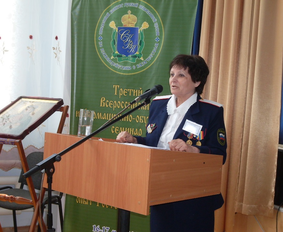 В своем выступлении Глава района Ольга Мельникова отметила, что изучение казачьего компонента в нашем районе начинается с детского сада, продолжается в общеобразовательной школе, потом учащиеся могут продолжить образование в кадетском корпусе, а также в профессиональном училище. Ольга Мельникова подробно остановилась на формах и методах работы в данном направлении. По окончании доклада участникам семинара было предложено посмотреть фильм о формировании казачьего образования в Белокалитвинском районе.