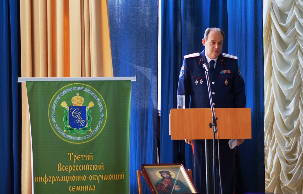 На открытии семинара со вступительным словом выступил председатель Синодального комитета по взаимодействию с казачеством митрополит Ставропольский и Невинномысский Кирилл, отметив, что одна из основных задач казачьих обществ - формирование целостной системы казачьего образования и решать ее возможно только в тесном сотрудничестве с органами региональной и муниципальной власти, епархиями Русской Православной Церкви, всем миром.