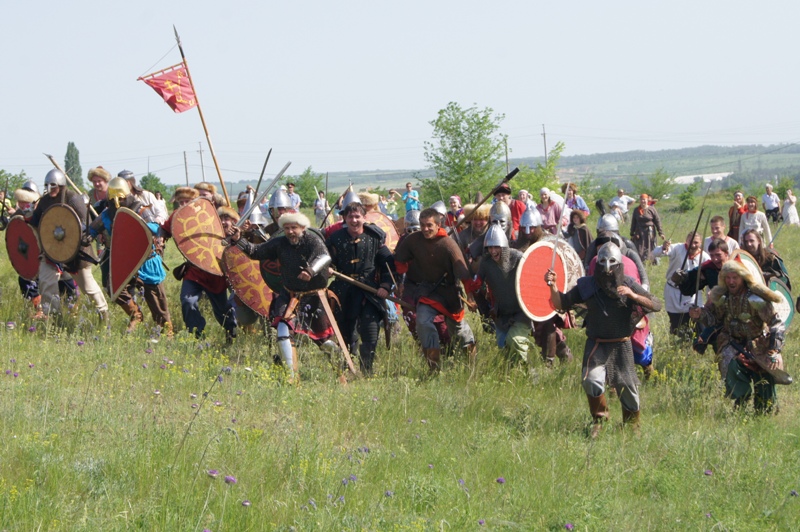 Участники исторических клубов воссоздали реконструкцию исторических событий, фрагменты битвы дружины князя Игоря с половцам.