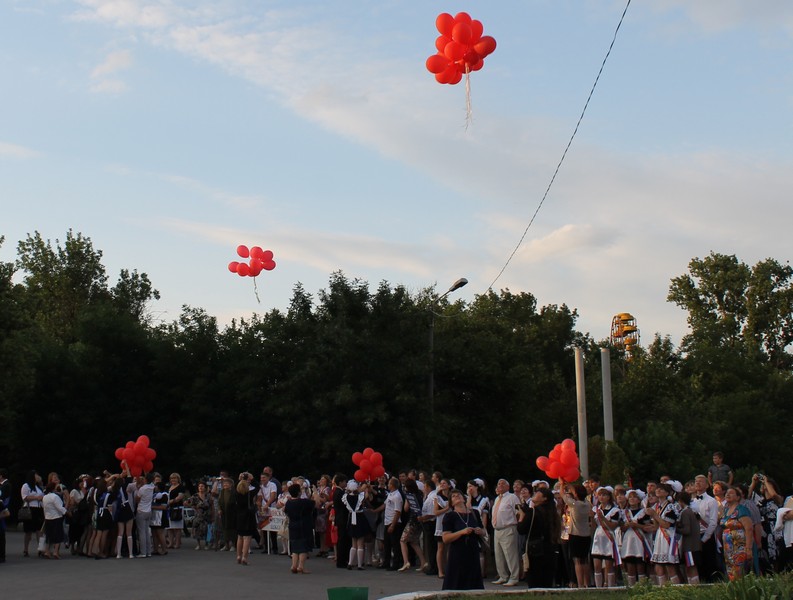 Для гостей праздника с танцевальными и песенными номерами выступили выпускники и учащиеся школ. Торжественная часть мероприятия завершилась запуском в небо разноцветных воздушных шаров и исполнением выпускниками венского вальса.