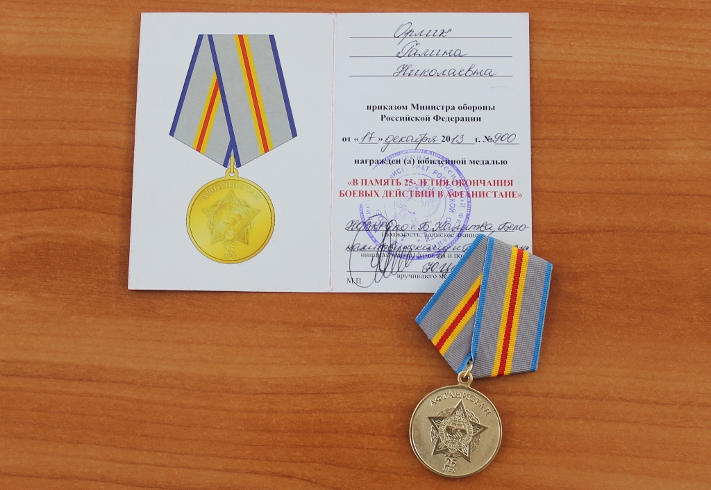 В соответствии с Приказом Министерства обороны Российской Федерации от 17 декабря 2013 года № 900 главный редактор телеканала «Белокалитвинская панорама» Галина Орлик награждена юбилейной медалью «В память 25-летия окончания боевых действий в Афганистане».