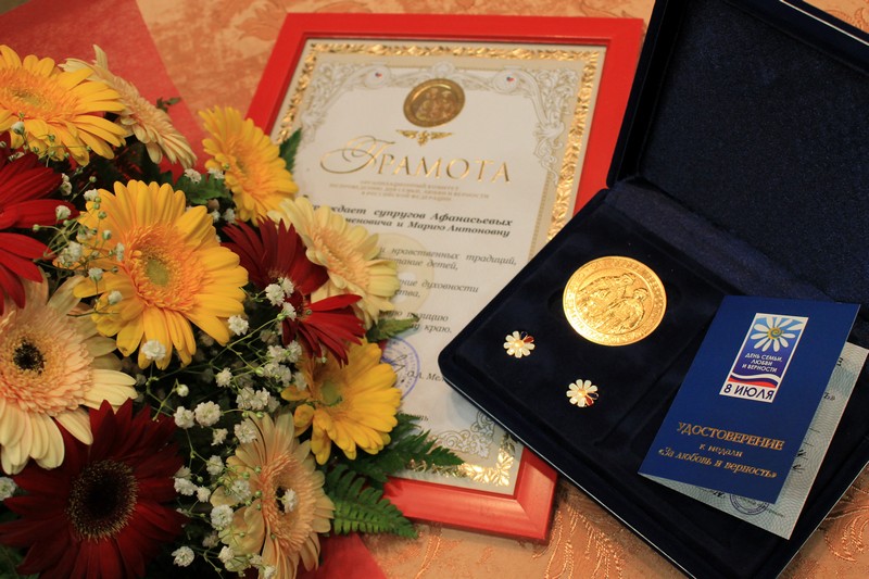 В преддверии Дня семьи, любви и верности, который отмечается уже седьмой год, Глава района вручила семейной паре Афанасьевых медаль «За любовь и верность». В дружной семье Афанасьевых трое детей, пятеро внучек и шестеро правнуков. «Я рада вручить высокую общественную награду тем, кто однажды связав себя семейными узами, пронёс свою любовь через года. Пусть эта медаль станет семейной реликвией и каждое новое поколение приумножает славу рода Афанасьевых », - отметила Ольга Мельникова. По традиции, супруги поставили подписи в книге «свадебных юбиляров».