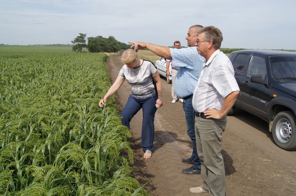 Руководитель отделения ООО «Усть-Донецкий АПК» Ирина Галдина показала поля новой для нашего района масличной культуры - сафлора, который хорошо адаптируется к жарким условиям Южных регионов и растет на полях после озимых зерновых. Сафлор используется в косметологии, фармакологии и целом ряде других промышленных отраслей.
