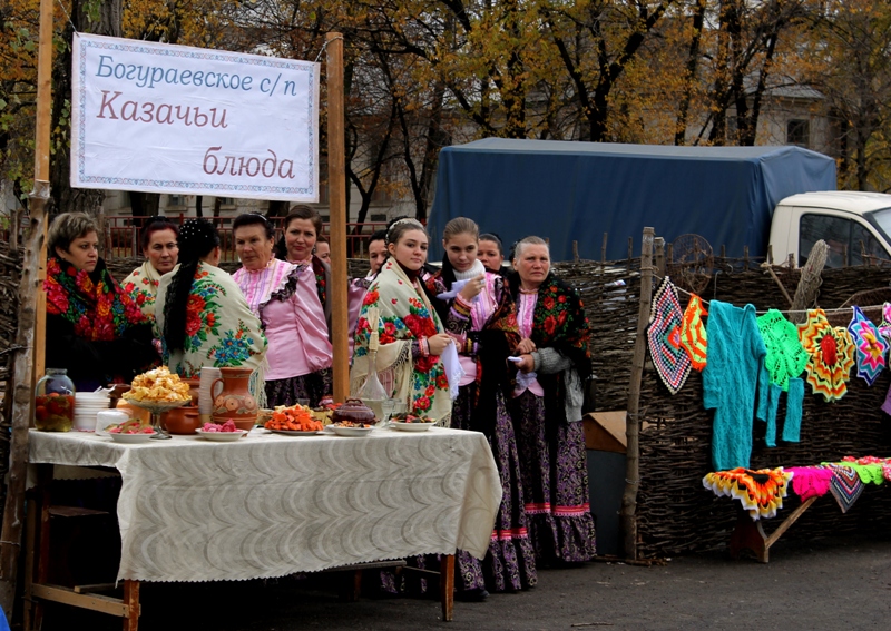 Перед началом фестиваля зрителям были представлены выставки предметов казачьего быта, изобилие блюд казачьей кухни.