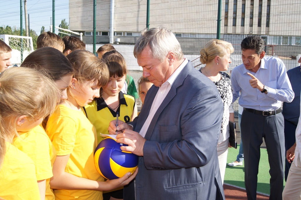 При посещении стадиона «Калитва», Ольга Мельникова сообщила, что в 2013-2014 годах был сделан капитальный ремонт западной трибуны и стрелкового тира, отремонтирован центральный вход стадиона, к концу сентября будут завершены работы по газификации стрелкового тира. На многофункциональной спортивной площадке, которая была открыта в этом году при поддержке Правительства Ростовской области, гостей встречали учащиеся отделения волейбола детско-юношеской спортивной школы №1, заслуженные тренеры и ветераны спорта. Тренеры выразили благодарность Правительству области и Администрации района за весомый вклад в развитие спортивной инфраструктуры. Василий Голубев пообщался с юными спортсменами и сделал фото на память.
