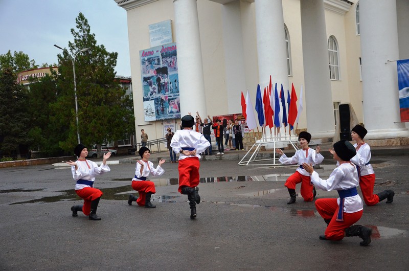 Не менее завораживающим зрелищем стал танец с саблями от кадетов Белокалитвинского казачьего имени Матвея Платова кадетского корпуса. Завершилась праздничная феерия общим молодёжным танцевальным флеш-мобом.