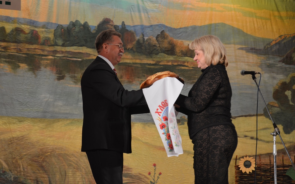 К поздравлениям присоединился заместитель главы Администрации района по сельскому хозяйству Иван Жирнов и поблагодарил работников сельского хозяйства за трудолюбие, верность и преданность своему делу, и от имени всех сельхозпроизводителей района вручил Ольге Мельниковой каравай нового урожая как символ успеха, достатка и процветания Белокалитвинского края.