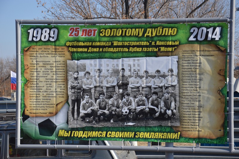 В Белокалитвинском районе праздник начался с высадки деревьев в парке п.Коксовый и праздничного спортивного мероприятия, посвященного 25-летию победы в Первенстве Ростовской области по футболу, завоевания Кубка газеты «Молот» по футболу командой «Шахтостроитель» пос. Коксовый. Под громкие аплодисменты ветераны памятного матча вышли на поле. Глава района Ольга Мельникова поблагодарила ветеранов за спортивную победу и вручила благодарственные письма и памятные подарки.