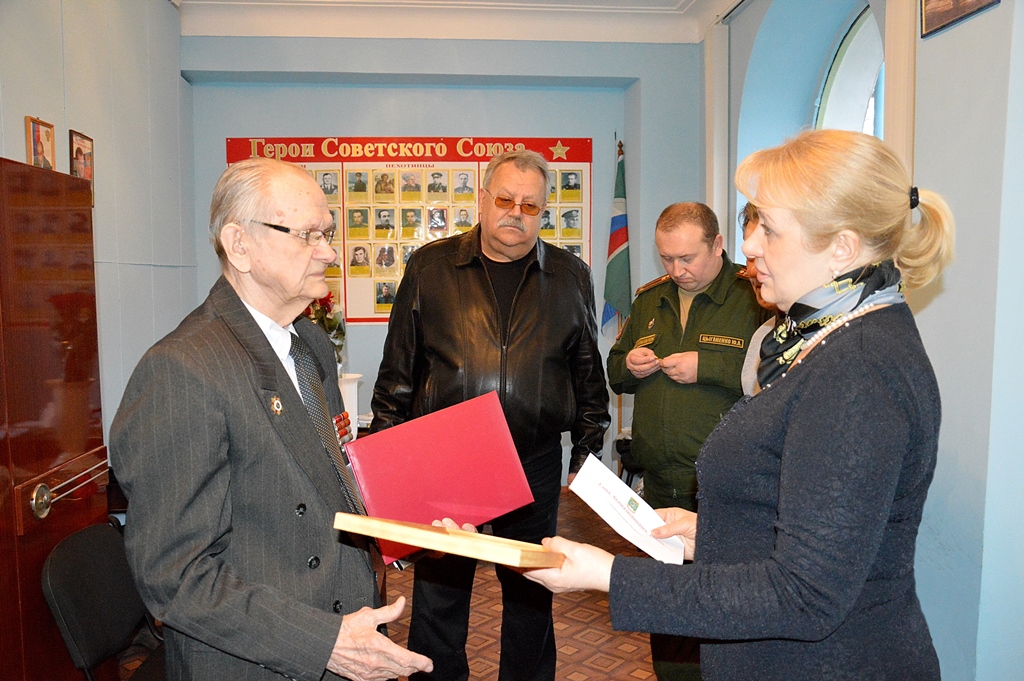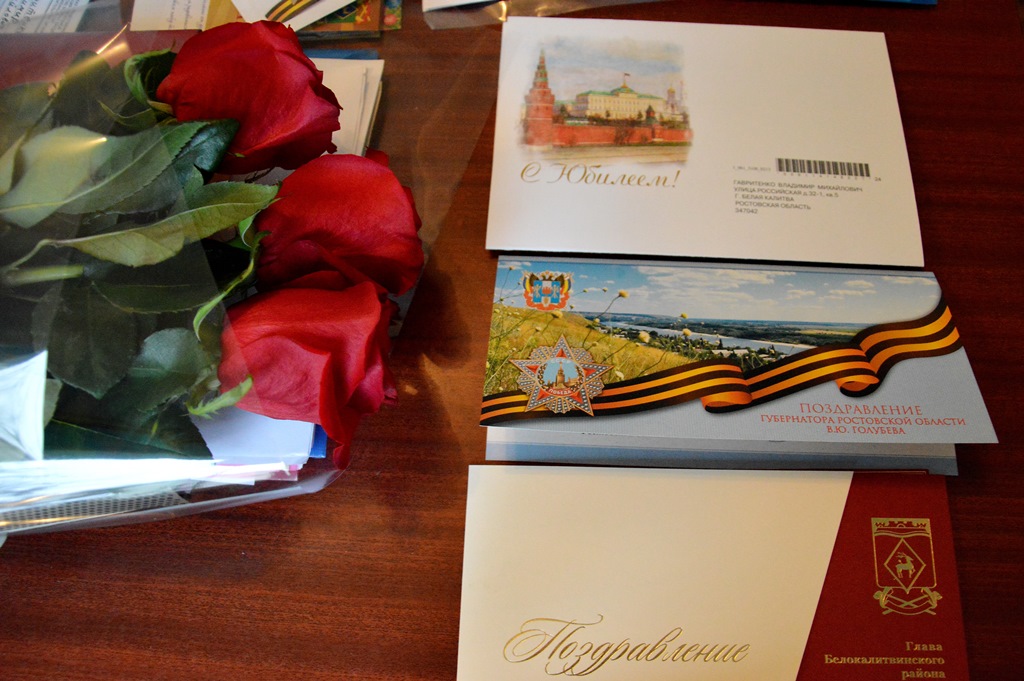 Ольга Мельникова поблагодарила Владимира Михайловича за большой вклад в дело защиты Родины, пропаганду военно-патриотического воспитания среди молодежи Белокалитвинского района и вручила Приветственный адрес и Почетную грамоту Главы Белокалитвинского района.