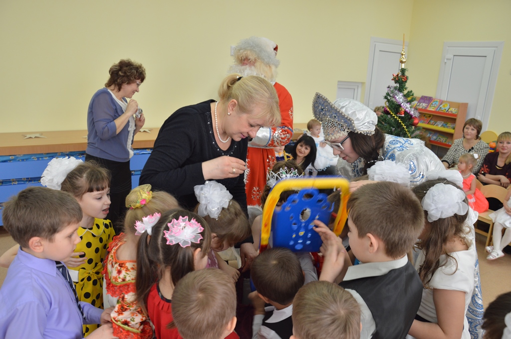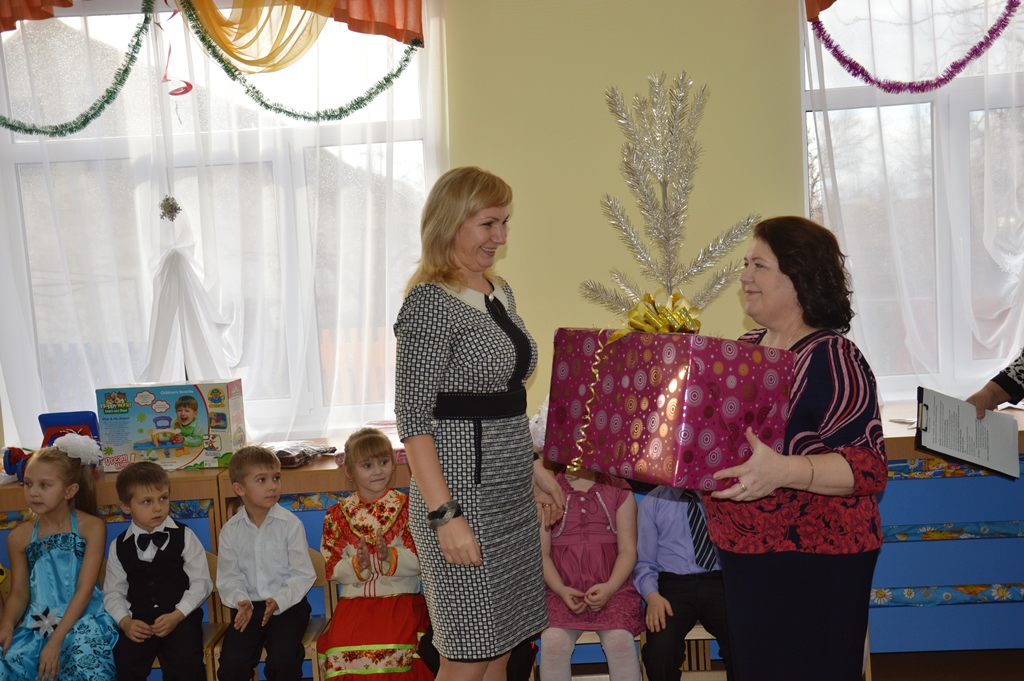 Ольга Мельникова и Лариса Тутова вручили подарки виновникам торжества и поздравили всех участников праздника с наступающим Новым годом, пожелав всем благополучия и мирного неба над головой.