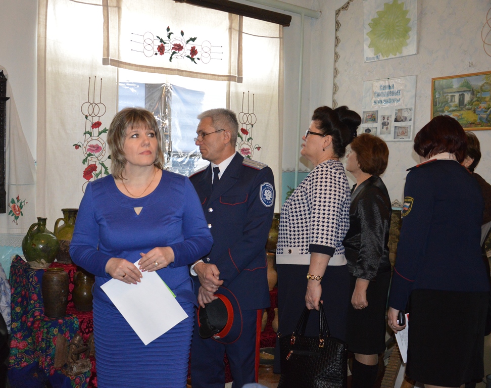 В ходе экскурсии по школе для участников семинара была представлена программа факультативных занятий и внеклассных мероприятий, экспозиция декоративно - прикладного искусства и казачьих ремесел, а так же посещение музея. В школе действуют три музейных комнаты: экологической направленности, боевой славы и казачьего быта. Приятно отметить, что экскурсоводами были не только преподаватели, но и ученики старших классов.