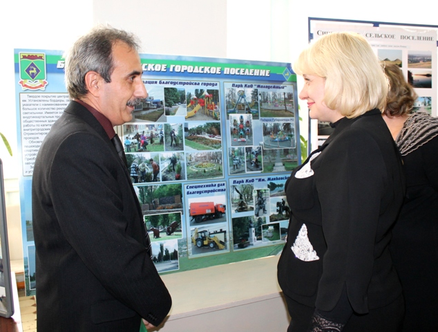В 15:00 два народных хора «Вольница» и «Рябинушка» радушно встречали Главу района Ольгу Мельникову хлебом и солью. И, уже в фойе здания состоялся осмотр стендов, представленных главами городских и сельских поселений. Ольга Мельникова по праву оценила достоинства и преимущества каждой представленной территории и отметила, что проведение данного мероприятия является знаменательным событием для жителей Белокалитвинского района, продвигая всех нас еще на один шаг к процветанию и благополучию.