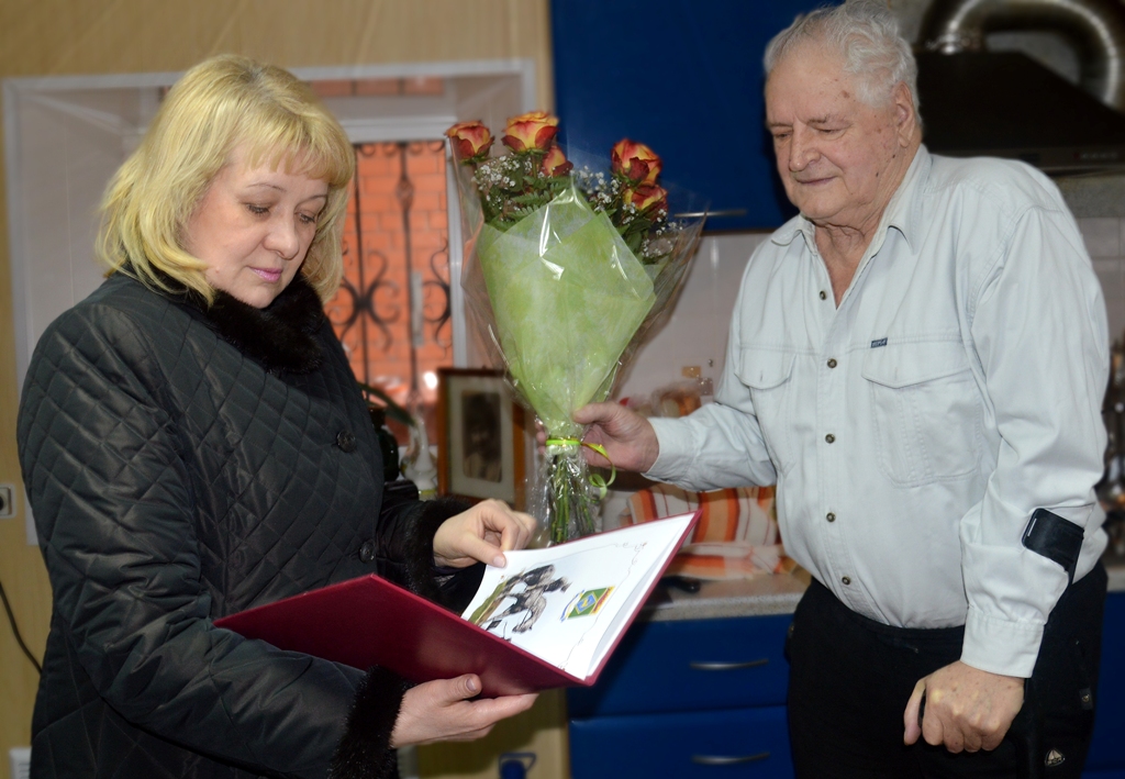 В день своего 75-летия Почетный гражданин города Белая Калитва и района Иван Дорошенко принимал поздравления от Главы района Ольги Мельниковой