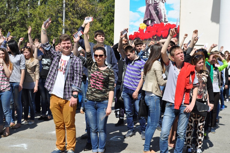 1200 школьников и студентов из числа участников областной акции "Скажи СПАСИБО ветерану!" перестраивались в живые буквы, чтобы сказать всему городу, всей стране, всему миру, что имя этому празднику – ПОБЕДА!