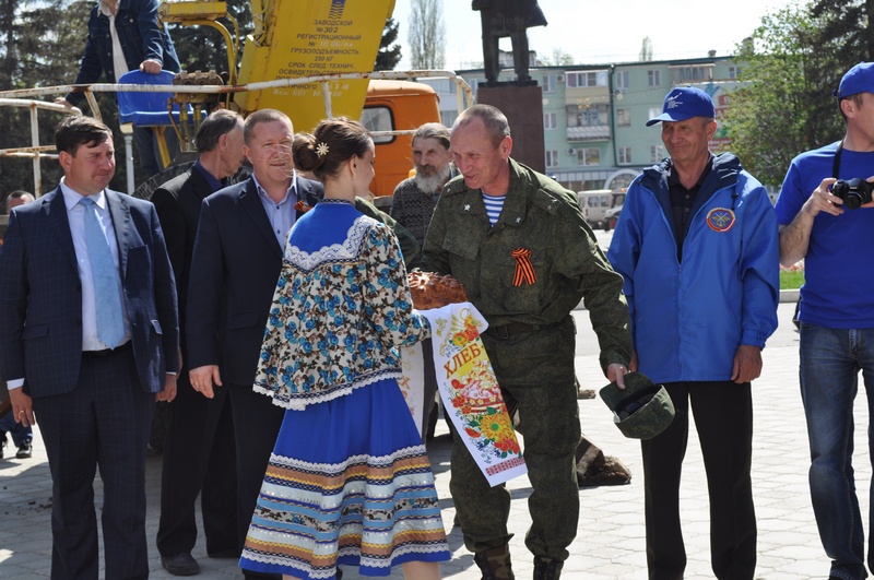 На театральной площади участников автопробега по доброй русской традиции встречали хлебом-солью. Заместитель Главы Администрации Белокалитвинского района Е.Н. Керенцева выступила с приветственной речью в адрес гостей и всех собравшихся. Елена Николаевна отметила, что инициаторами автопробега стали те организации, которые занимаются с молодёжью и уделяют большое внимание воспитанию у неё чувства патриотизма, любви к Родине, гордости за её славное историческое прошлое. «Задача молодого поколения - помнить о Подвиге дедов и прадедов, гордиться ими и достойно реализовать право на жизнь, которое они для нас завоевали в годы войны».