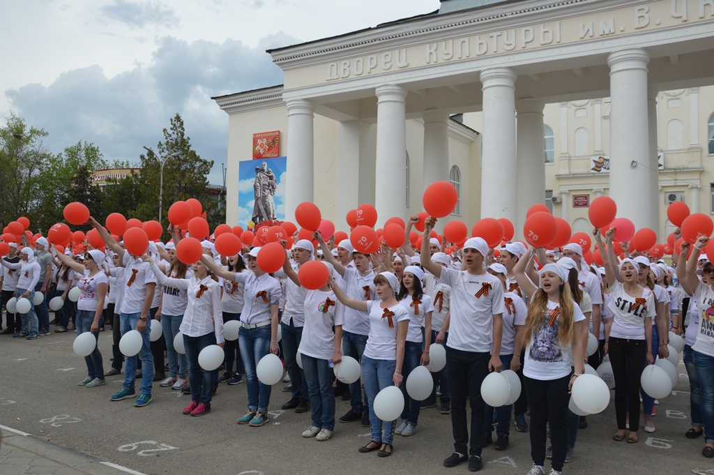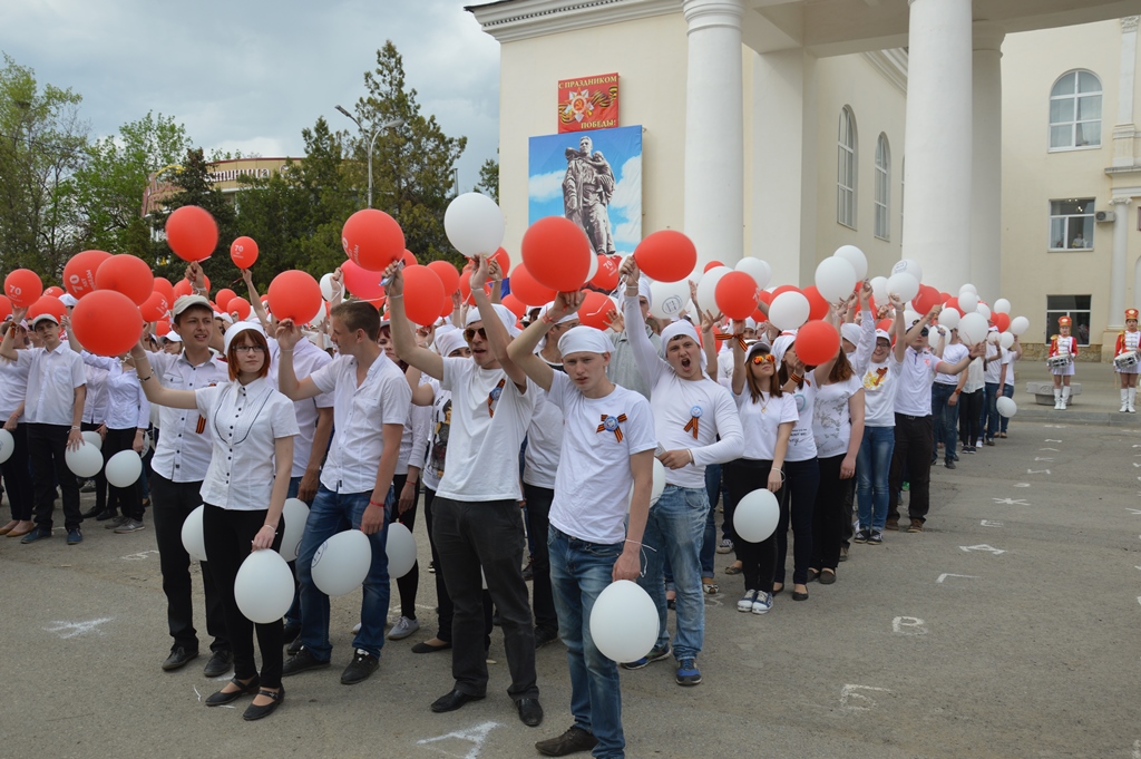 В Белокалитвинском районе в преддверии 70-летия Победы в Великой Отечественной войны 1941-1945 годов состоялась акция «Скажи СПАСИБО ветерану!», почетными гостями которой были ветераны Великой Отечественной войны. «На Вашем поколении лежит ответственность за то, чтобы те идеалы дружбы, братства, преданности Родной земле, которыми так дорожили наши отцы и деды, не были осквернены и поруганы нашими недоброжелателями. Сегодня вы сделали одно большое дело, отдав дань памяти и уважения великому поколению победителей», - отметила Глава района Ольга Мельникова, приветствуя участников акции. Акция «Скажи СПАСИБО ветерану!» в этом году запланирована в 6 городах Ростовской области и проводится с целью выражения признательности ветеранам Великой Отечественной войны, благодаря мужеству и героизму которых была одержана победа над фашизмом. В Белокалитвинском районе в акции приняли участие 1400 человек из числа учащихся школ, училищ, а также студентов техникумов. На площади Театральная ребята выстроили «живые» слова: СПАСИБО, ПОБЕДА, 70 ЛЕТ, РОССИЯ, КАЛИТВА, РОДИНА, ЖИЗНЬ и с воодушевлением исполнили главную военную песню «День Победы». Юные белокалитвинцы отметили, что для них большая честь участвовать в данном мероприятии, они будут достойны подвига отцов и дедов, их нравственных и патриотических традиций служения Родине