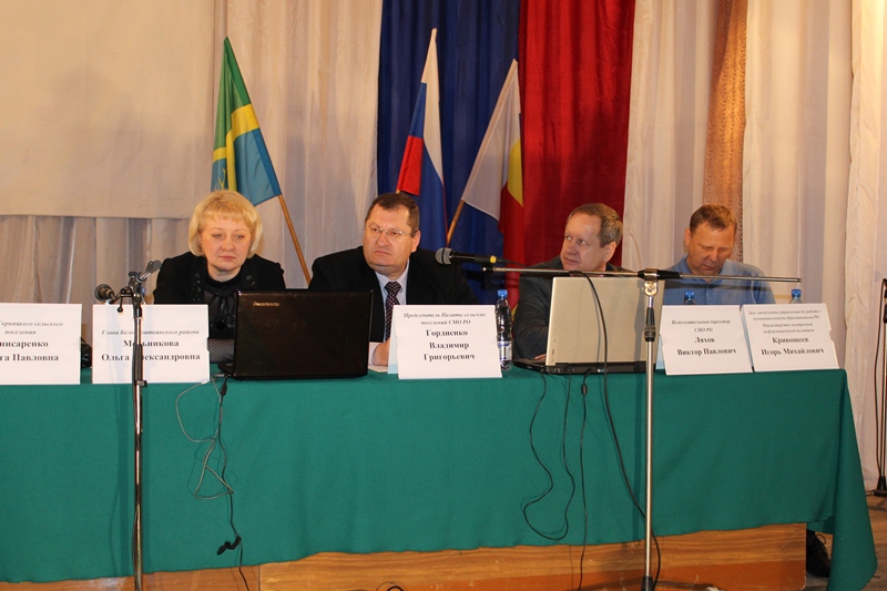 Глава Горняцкого сельского поселения Ольга Снисаренко представила красочную презентацию о жизни поселения, заметив, что жизнь в поселении насыщенная и яркая, несмотря на существующие проблемы. Председатель Палаты сельских поселений Владимир Гордиенко, задал вопрос Ольге Снисаренко о том, сколько сотрудников работает в администрации и как они справляются с существующей нагрузкой. Глава поселения ответила, что все функции выполняют 10 человек, работая в напряженном графике.