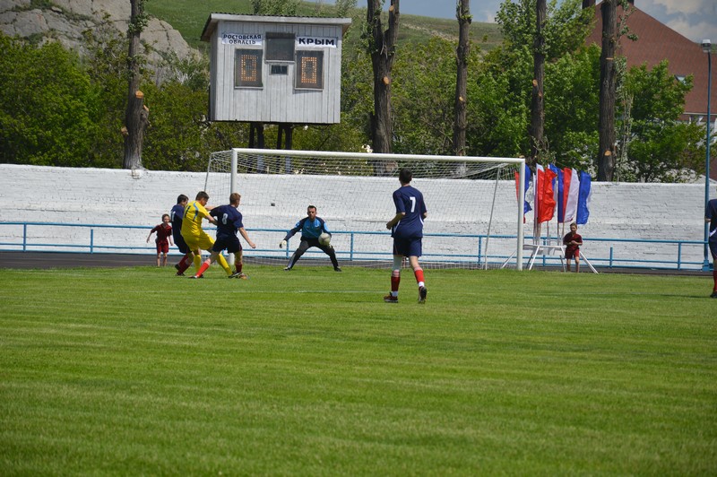 Обе команды играли с полной самоотдачей, и настрой игроков передался на трибуны городского стадиона.Игра прошла в дружеской атмосфере, закончился товарищеский матч ничьей. После награждения команд и лучших игроков, было сделано общее фото участников футбольного матча. Подобного рода спортивные состязания, являются действенной пропагандой здорового образа жизни, а неформальное общение послужит укреплению взаимодействия между субъектами Российской Федерации. Кроме годовщины воссоединения Республики Крым и г. Севастополя с Россией, футбольный матч был приурочен к самому главному событию года - 70-летию Победы. Вначале футбольного матча, была объявлена акция «Письмо ветерану», в которой приняли участие студенты, учащиеся школ, жители города. Все присутствующие на матче, могли написать слова благодарности людям, отдавшим самое дорогое-жизнь за наше мирное будущее и вложить свое послание в импровизированны