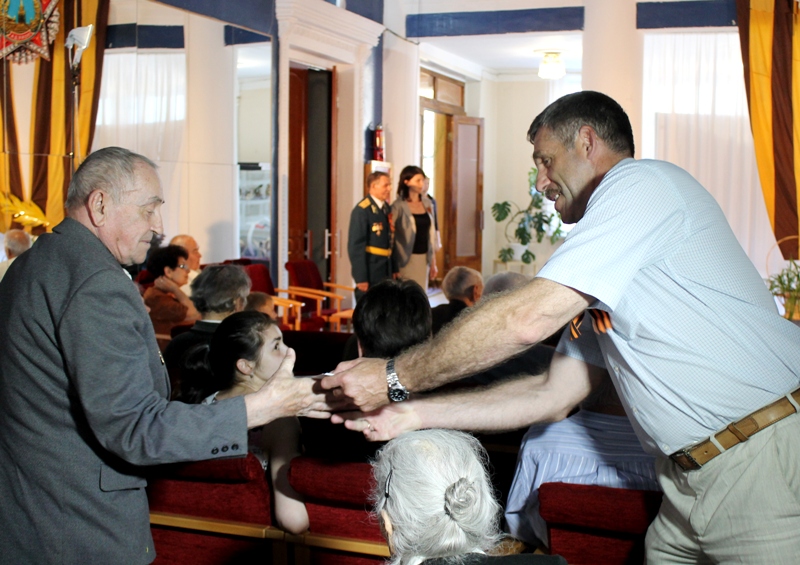 Далее участников войны поприветствовал сын Героя Советского Союза, Почётный гражданин г. Белая Калитва Владимир Атаев, который со слезами на глазах говорил о том, что всегда рад бывать на Белокалитвинской земле, где чтят и помнят его отца – Аннаклыча Атаева.