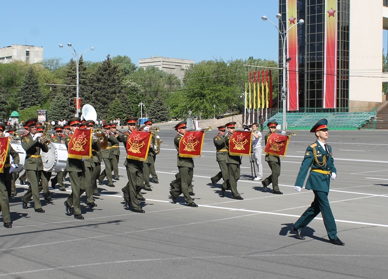 Далее все участники церемонии наблюдали прохождение по Театральной площади роты почётного караула и войск Ростовского-на-Дону гарнизона.