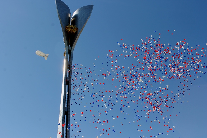 После возложения цветов в небо было выпущено огромное количество воздушных шаров в цвете российского триколора.