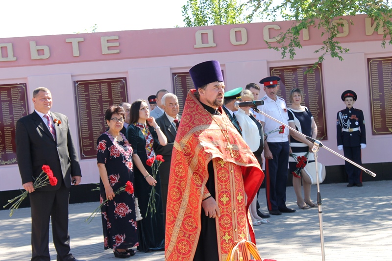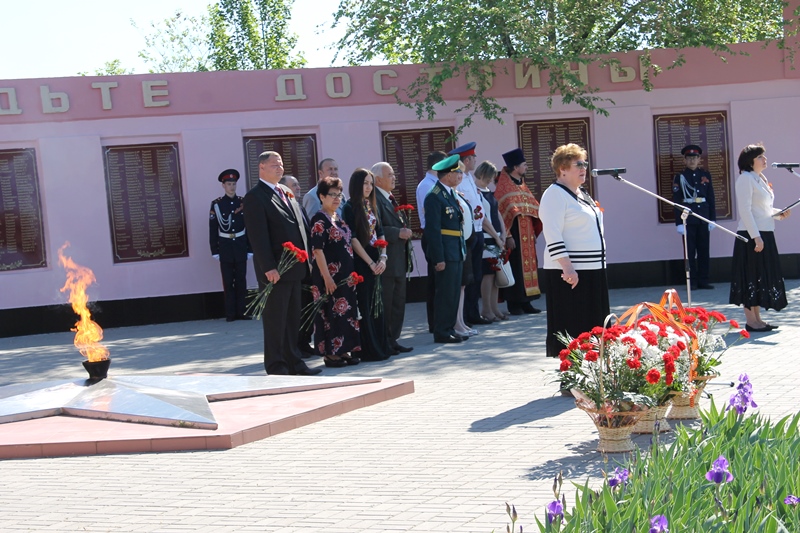 С праздником собравшихся также поздравили: председатель Собрания депутатов Белокалитвинского района Валентина Сидненкова, сын Героя Советского Союза Аннаклыча Атаева Владимир Атаев, председатель Совета ветеранов войны, труда, Вооруженных Сил и правоохранительных органов Владимир Амельченко, начальник отдела военного комиссариата по Белокалитвинскому и Тацинскому районам Юрий Цыганенко и настоятель Свято-Троицкого храма, отец Александр Калабухов.